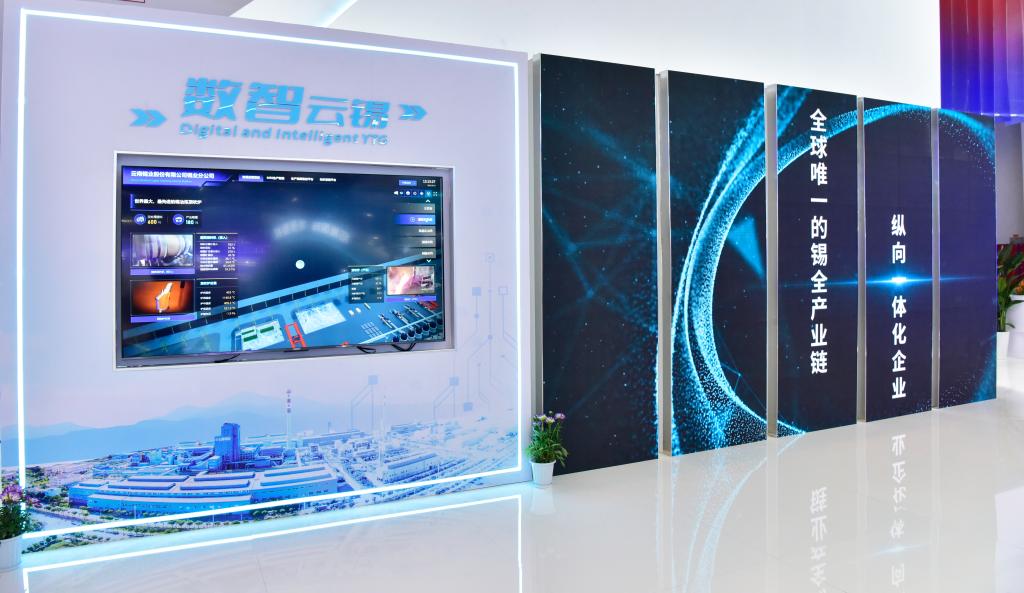 “錫銦新質(zhì)生產(chǎn)力”板塊以五折屏形式,呈現(xiàn)云錫作為全球唯一的錫全產(chǎn)業(yè)鏈縱向一體化企業(yè),以科技創(chuàng)新引領(lǐng)高質(zhì)量發(fā)展的生動實踐;通過錫冶煉數(shù)字孿生工廠線上演示,展現(xiàn)云錫以數(shù)智化賦能,推進(jìn)5G+應(yīng)用與產(chǎn)業(yè)深度融合,加快打造全球錫行業(yè)唯一“燈塔工廠”的新探索。