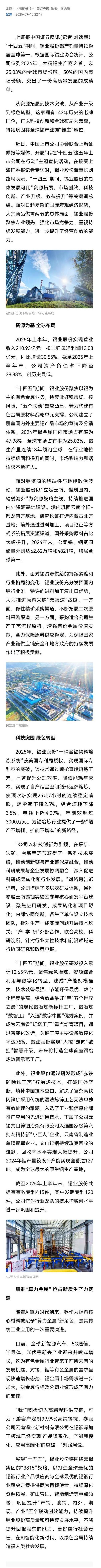 中國(guó)證券網(wǎng):錫業(yè)股份——科技突圍 奔赴“綠色智造”新征程