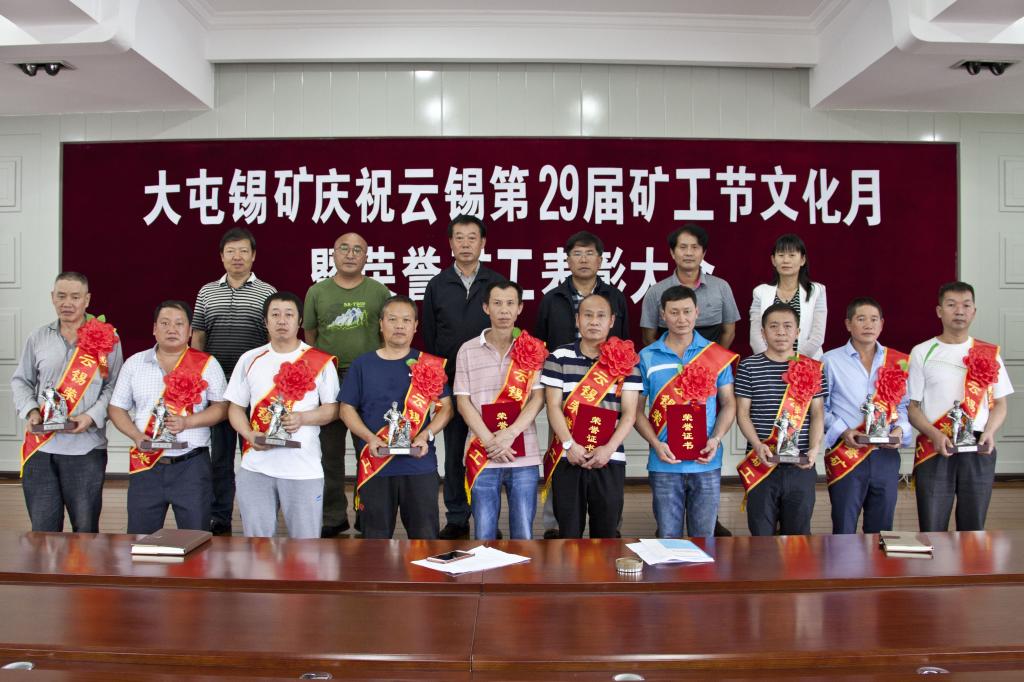 今年大屯錫礦被控股公司授予“榮譽礦工”光榮稱號的分別有從事井下主要工種滿30年的鄭貴良、李智忠;滿25年不滿30年的譚正榮;滿15年不滿25年的毛錫文等7人。大屯錫礦紀(jì)委書記武銳宣讀了表彰決定,與會的礦領(lǐng)導(dǎo)向“榮譽礦工”頒發(fā)了榮譽證書、獎品及獎金。