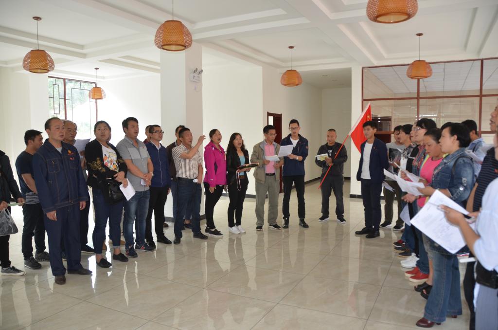 在黨課開始前,錫材公司6名新黨員面對黨旗莊嚴宣誓,與會的40多名老黨員一起重溫入黨誓詞,進一步增強黨員意識,牢記黨員使命。